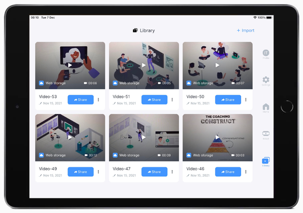 We recommend saving and uploading the video immediately after recording. The iPad will need to be connected to the internet to upload a video.